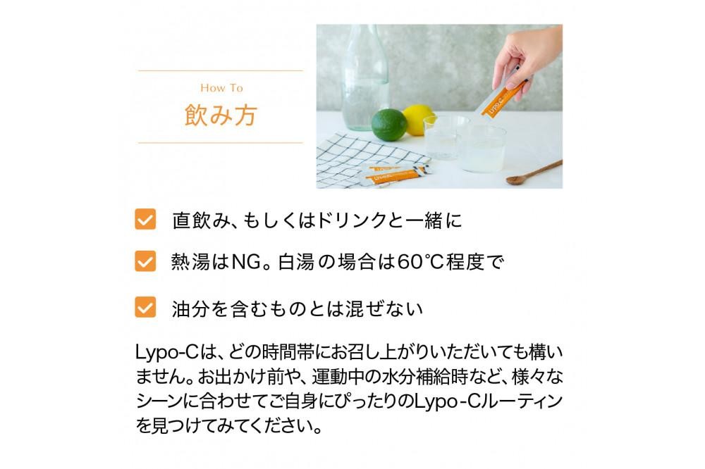 | 容量 | Lypo-C Vitamin C+D 30包入×2箱 全6回お届けします。 1包あたり ビタミンC 1,000mg ビタミンD 2,000IU 内容量:186g(6.2g×30包) |