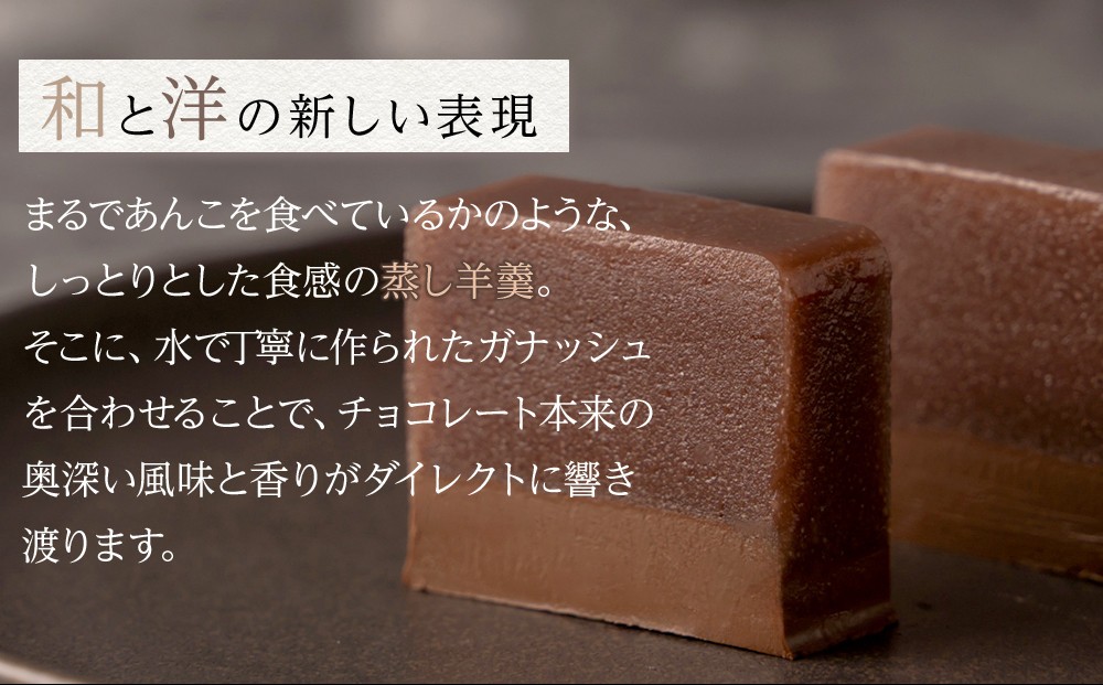 まるであんこを食べているような食感の蒸し羊羹に、水で作ったガナッシュを合わせる事で