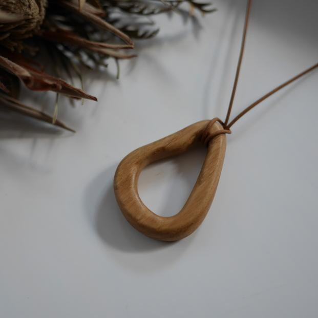 1つ1つ手間と時間を掛けて制作した、木と牛革を用いたネックレス。
