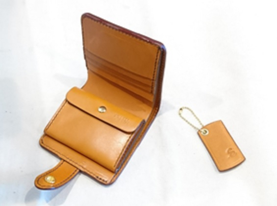 ハーフウォレット・キーホルダーキャメル2点セット牛革栃木レザー財布サイフさいふsaifu手縫いハンドメイド革専門店手作りSNAKER-handicraft神奈川湘南藤沢