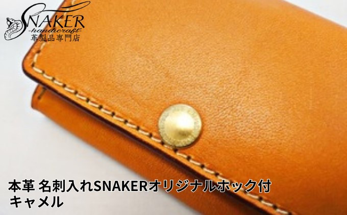 【SNAKER-handicraft】本革栃木レザー使用名刺入れSNAKERオリジナルホック付キャメル