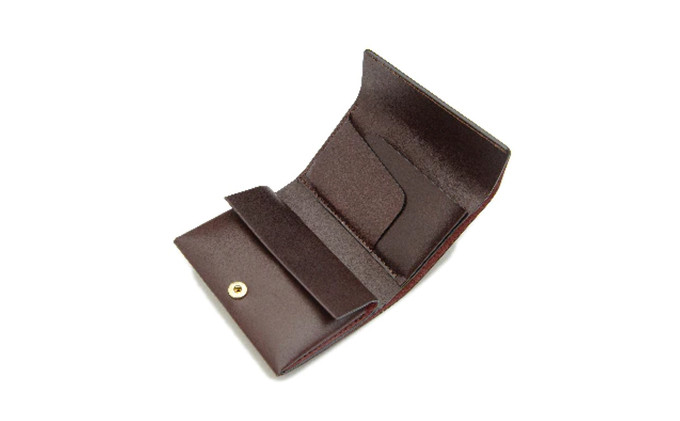 折り革技法によって仕立てられたレタータイプのミニコンパクトウォレット