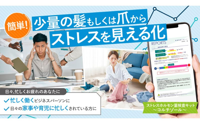 本検査は、爪を送るだけでコルチゾール量を測定できるため、とても簡単にストレスレベルがわかります。