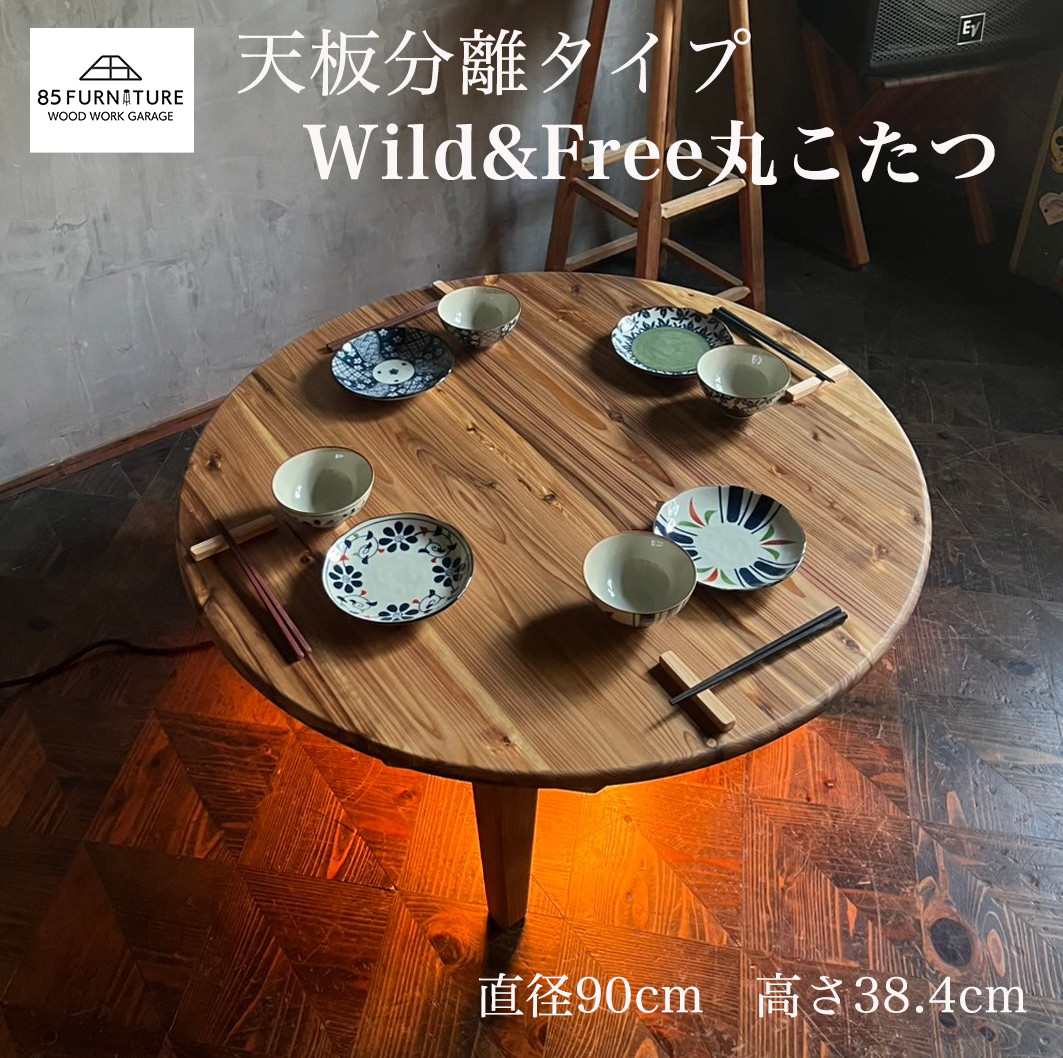こたつ 直径90cm 高さ38.4cm 丸型 ちゃぶ台 コタツ 家具 テーブル 無垢材 ダイニング インテリア 木製 ハンドメイド カグ かぐ テーブル てーぶる デスク 机 杉 ビンテージ 椅子 日用品 リビング キッチン 市場家具 85ファニチャー 国産 神奈川 湘南 藤沢