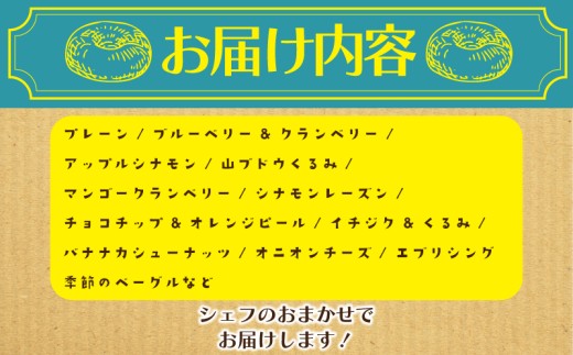 国産小麦の風味が味わえるシンプルなベーグル5個と、毎日10種以上焼き上がるベーグルの中から、シェフのお任せで7種×各1個が入った大満足なセットです。