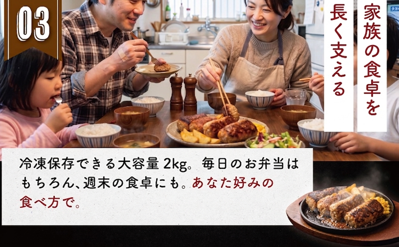 円柱形のため、半解凍の状態でお好みの厚さにカットでき、お弁当用のミニハンバーグとしても便利にお使いいただけます。