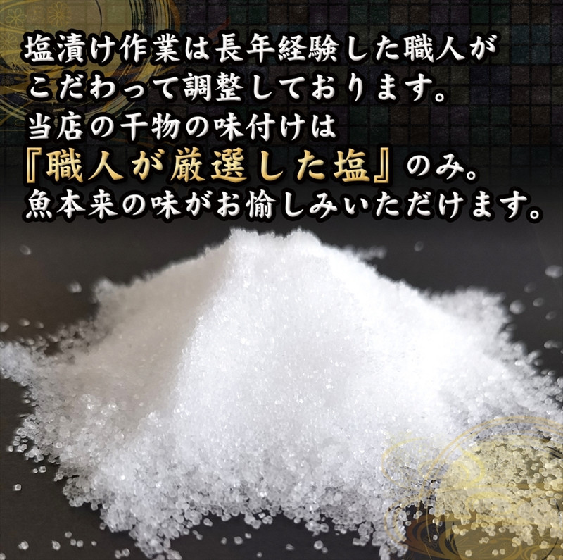 厳選した魚と塩を使い、職人の手で漬け時間を調整した、絶妙な塩加減で脂ののった干物をお届けします。