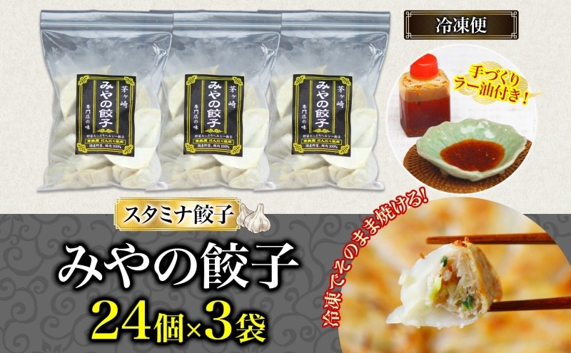 みやの餃子 スタミナ餃子 24個×3セット ラー油付き 餃子 ギョーザ ギョウザ 冷凍 お店の味 専門店 餃子専門店 国産 手づくり にんにく ラー油 一人暮らし 備蓄 ストック お取り寄せ 送料無料 神奈川県 茅ヶ崎市