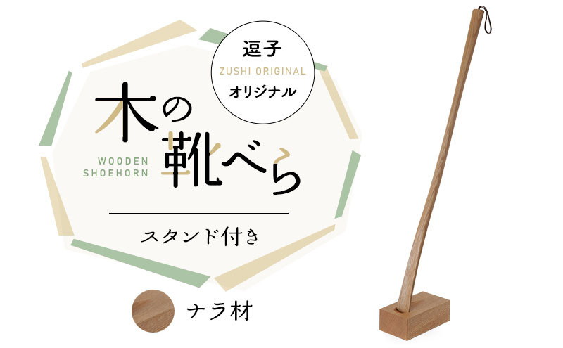 靴べら 逗子オリジナル 木の靴べら スタンド付き ナラ材 靴 くつ 日用品 雑貨[№5875-0067]