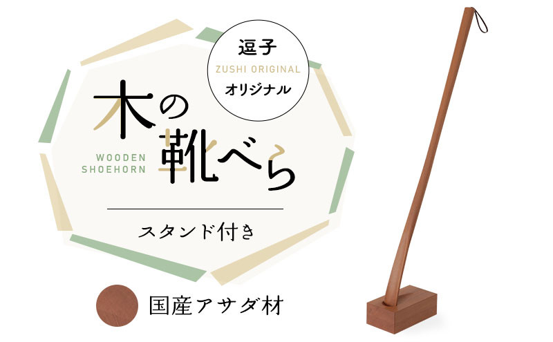 逗子オリジナル 木の靴べら(スタンド付き) 国産アサダ材 [№5875-0115]