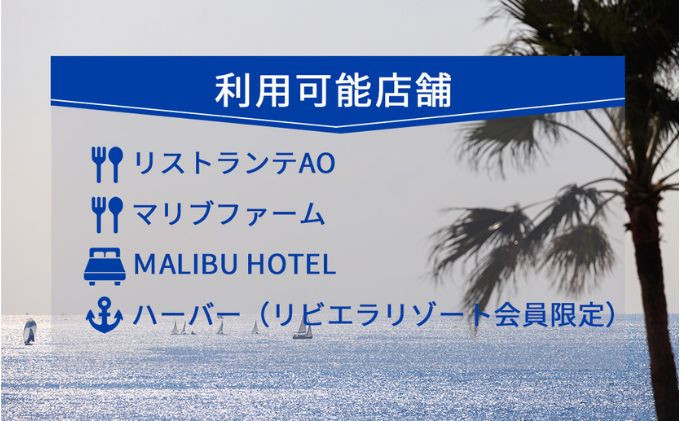 【リビエラ逗子マリーナ】レストラン食事 (AO・マリブファーム)、マリブホテル宿泊利用ギフトカードC〈30,000円分〉 [№5875-0396]