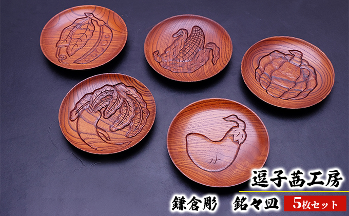 逗子茜工房 鎌倉彫 銘々皿(5枚セット) [№5875-0593]