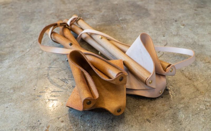 コンパクトに収納でき、肩掛けで運びやすいスツールです。