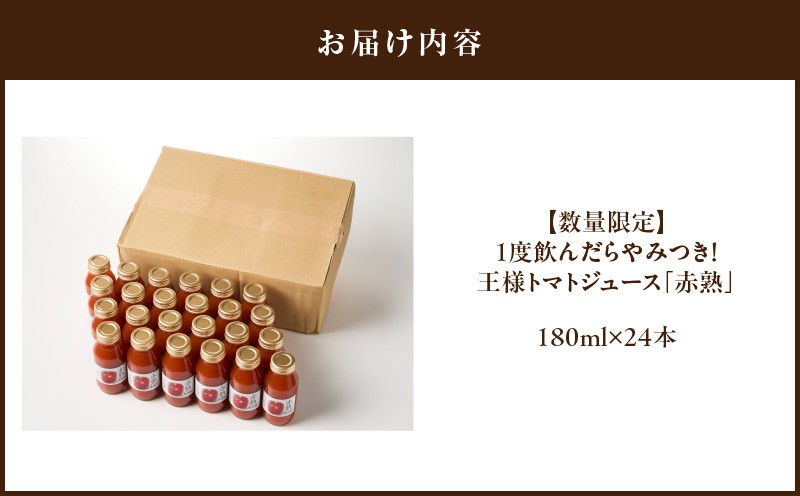 先行予約!リコピンたっぷりの完熟トマトをジュースに! 【数量限定】1度飲んだらやみつき!王様トマトジュース「赤熟」 180ml×24本 M001-007