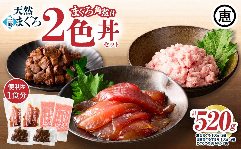 簡単おかずがすぐ完成! <選べる>三崎まぐろ 2色丼セット まぐろの角煮付 計520g (漬けまぐろ、目鉢まぐろすきみ、まぐろの角煮)【7営業日以内に発送 または 配送月が選べる】 M020-023_SKU