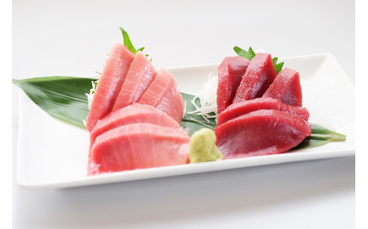 とろける旨さの大トロと、濃厚な赤身、食べ易さが人気のまぐろのたたきのセット。