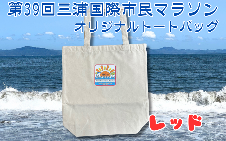 大会限定トートバッグ 第39回 三浦国際市民マラソン大会 記念グッズ【オリジナルトートバッグ】(ロゴ枠:レッド) M037-009-01