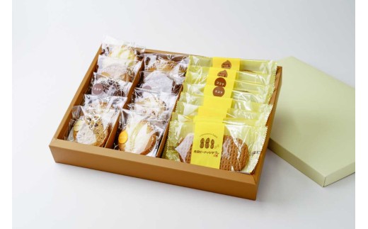 容量 | クッキー:チーズ、ココア、チョコチップ、クルミ、アーモンド 各×2 合計10枚 ピーナッツサブレ:プレーン×4、ココア×2、ほうじ茶×2 合計8枚 |