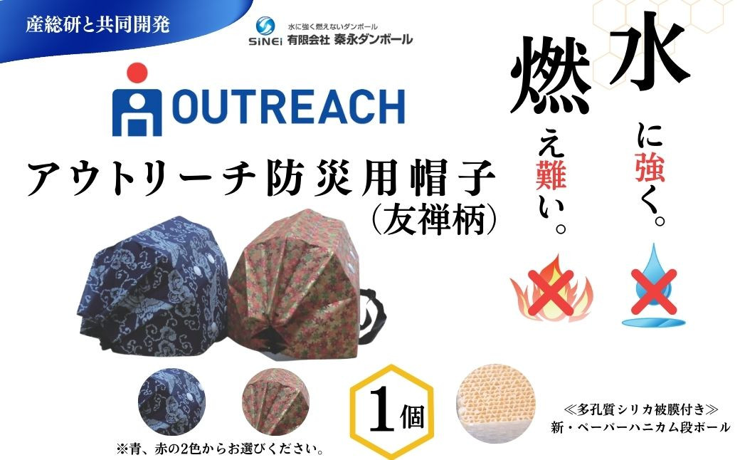 010-16秦永ダンボールのアウトリーチ防災用帽子(友禅柄) 1個 / 災害対策 軽い耐久性 紫外線 防水 サポート用品 防災グッズ 防寒 黒 青 赤 地震災害時 着用 安全 軽い 燃えにくい 水に強い 耐水 難燃 ペーパー ハニカムダンボール製 防災用 帽子 畳める 枕元 バック ランドセル 携帯