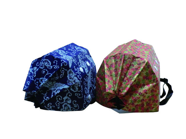 耐水・難燃ペーパーハニカムダンボールを材料とし、折り紙工学と融合して誕生した、「安全で、軽く、燃えにくく、水に強い」ダンボール製の防災用の帽子です。