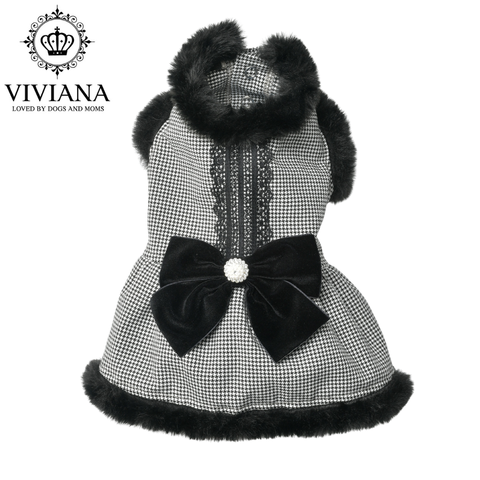 「VIVIANA」の「ママとワンコに愛されるドッグウェア」 ドッグウェア「VIVIANA」千鳥格子ファーワンピース / Black