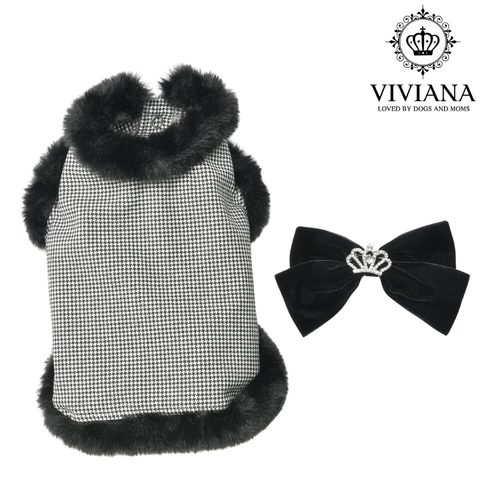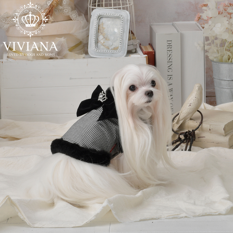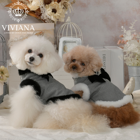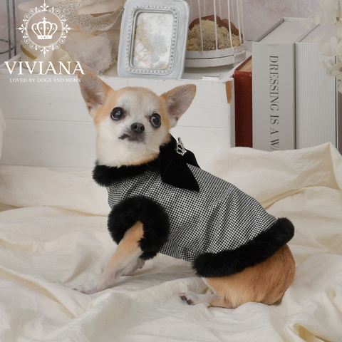 「VIVIANA」の「ママとワンコに愛されるドッグウェア」 ドッグウェア「VIVIANA」千鳥格子ファーベスト / Black