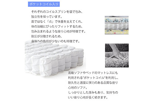 ハイバックの1人掛けソファ。座面にはポケットコイル搭載。