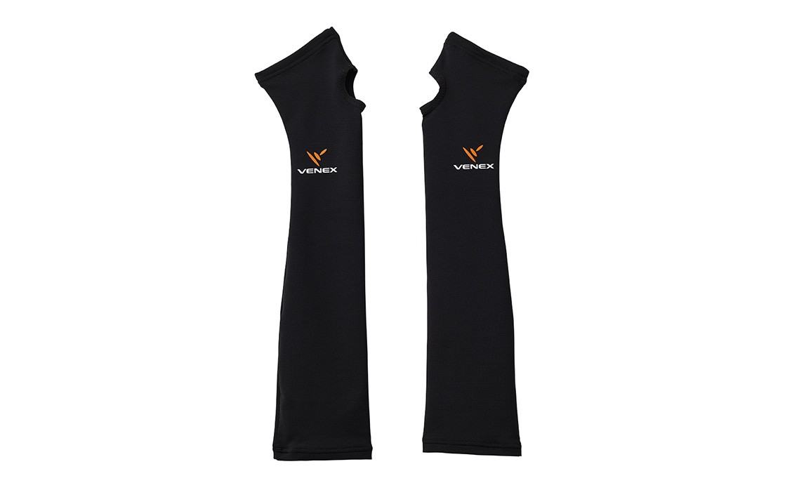 立体的なパターンで腕をソフトフィット。手先から肘までカバーできるロングタイプのアームカバー。