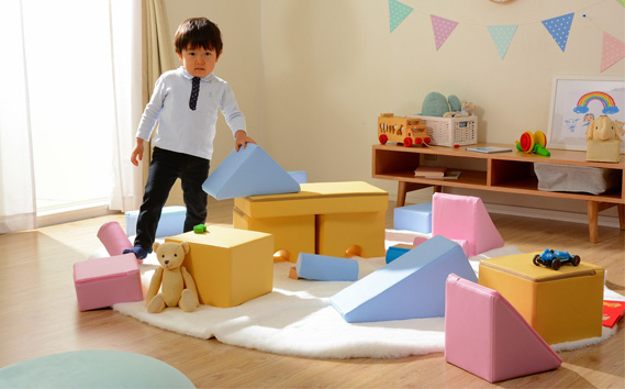 パーツが豊富だから、遊び方は無限大。柔らかすぎないからヘタリにくく、長くお使いいただけます。