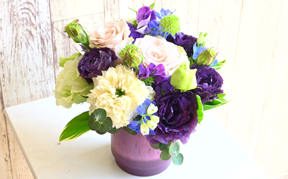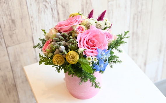 季節のお花を使った各種ギフトに対応したフラワーアレンジメント 誕生日等の日にち指定に対応