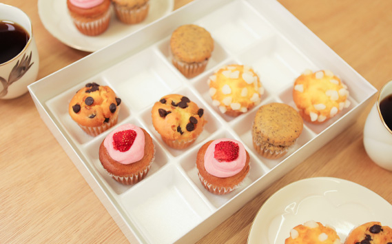 フィンガーフードサイズのかわいい小振りな米粉マフィン4種を3個ずつ計12個のアソートセット。