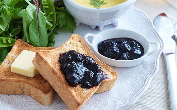 完熟したブルーベリーをひと粒ずつ摘み取って、コトコトと煮込んだ農園の恵みをゴロっとまるごと味わってください。