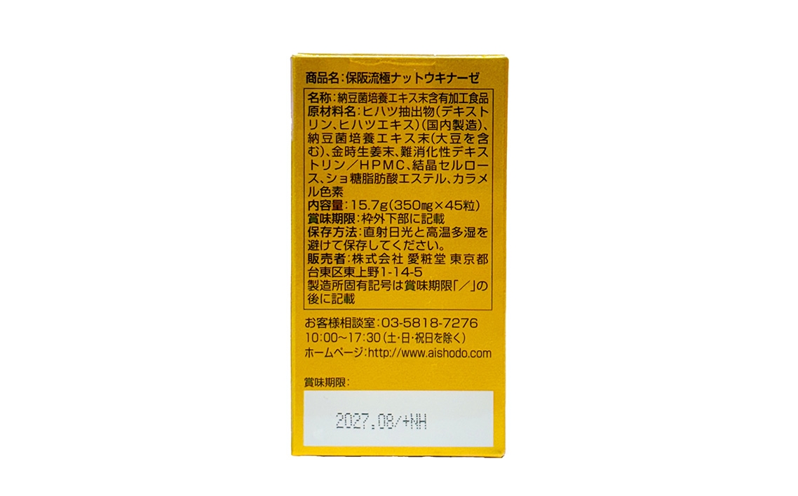 | 容量 | 保阪流極ナットウキナーゼ(45粒)×1 ●原材料をご参照の上、食物アレルギーのある方は摂取しないでください。また、体質や体調によりまれに合わない場合があります。その場合は摂取を中止してください。 ●妊娠・授乳中の方、お子様は摂取しないでください。 ●薬を服用・通院中の方は医師にご相談ください。 ●成分特有のにおいや色の違いがありますが、品質に問題ありません。 ●乳幼児の手の届かないところに置いてください。 ●ぬれた手で触らずに、衛生的にお取り扱いください。 ●開封後はなるべく早くお召し上がりください。 ●乾燥剤は誤って召し上がらないでください。 ●沖縄・離島への配送は不可となります。 |