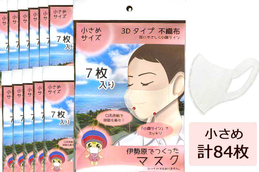 [伊勢原でつくったマスク] 小さめサイズ 12パック (合計84枚)※…