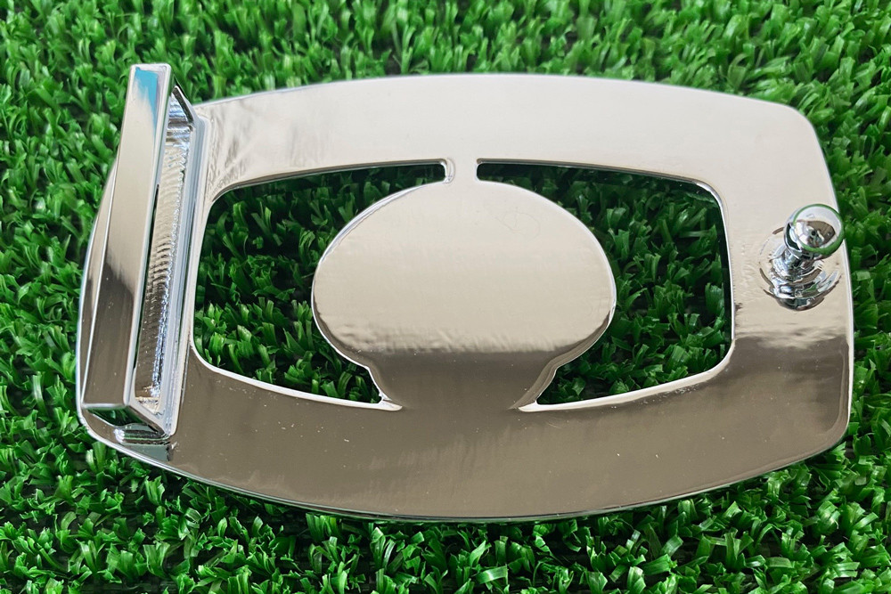 ベルトのバックルに、伊勢原市公式イメージキャラクターであるクルリンを乗っけてみました。 素材はSUS440Cで、5軸マシニングセンタで削り出しました。 突起部は溶接等の接合ではありません。 装飾メッキ+バフ研磨でピカピカに仕上げました。 革工房にてベルトを取り付けて完成となります。 ※3枚目の画像は、カラー赤の参考画像です。 ※選択された色の在庫により納期が延びる場合があります。 事業者:株式会社 ミドリ産工