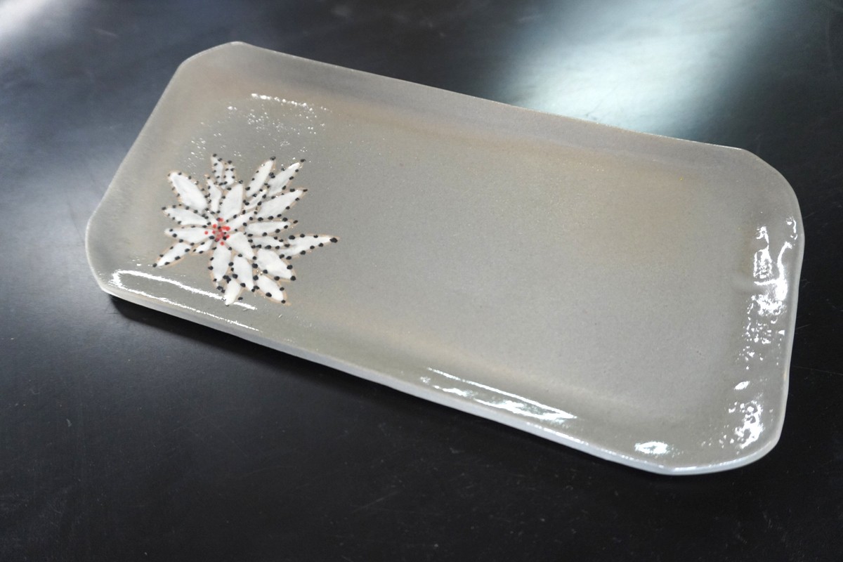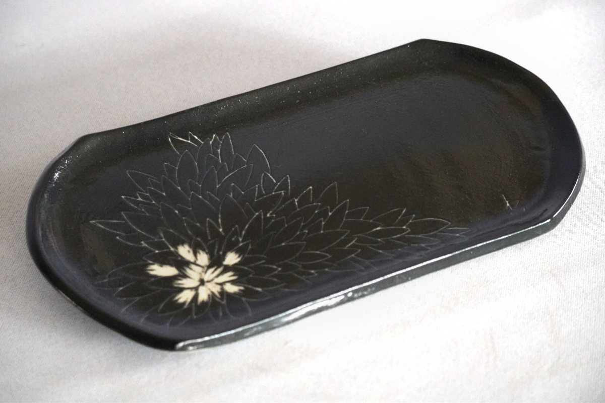 源太夫窯・村山恵子さんが手がける長皿は、食卓をすっきりと見せる上品なフォルムが魅力です。