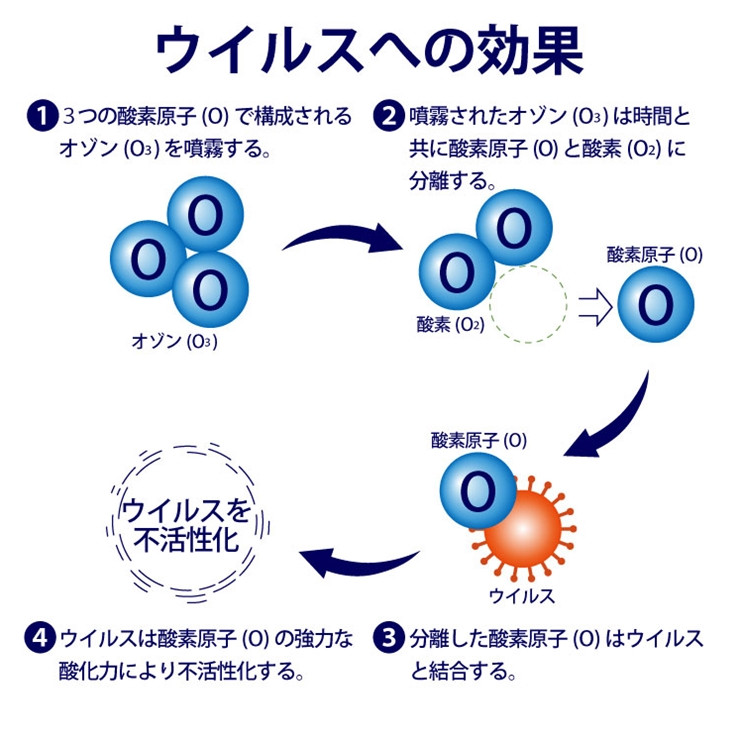 ・オゾンの強力な脱臭効果は悪臭を香りで誤魔化すのではなく空気中に漂っている臭いの物質に直接、酸化・分解するので臭い戻りはありません。