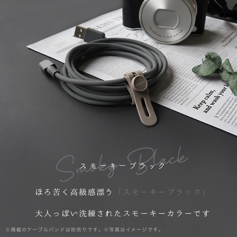 ケーブルにはシリコン素材のケーブルバンドが付属しており、ケーブルをくるっとまとめて持ち運ぶ際にも便利です。
