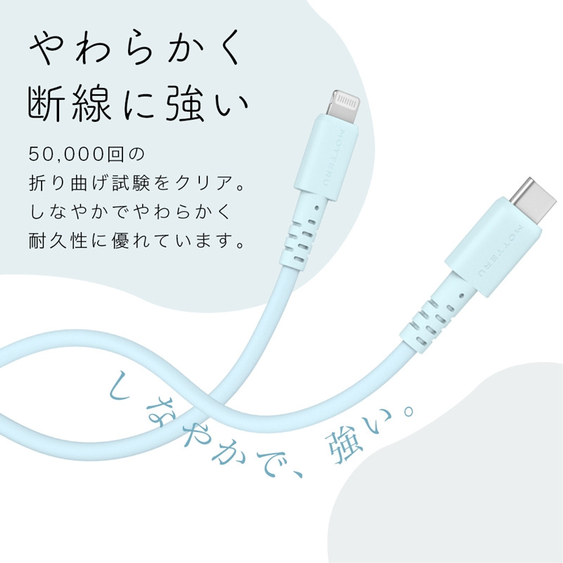 MOTTERU(モッテル) しなやかで絡まない シリコンケーブル 急速充電 データ転送対応 Apple MFi認証品 USB-C to Lightning 2m 全6色 2年保証(MOT-SCBCLG200)ラテグレージュ 【 神奈川県 海老名市 スマホケーブル 充電ケーブル タイプC ライトニング ガジェット】