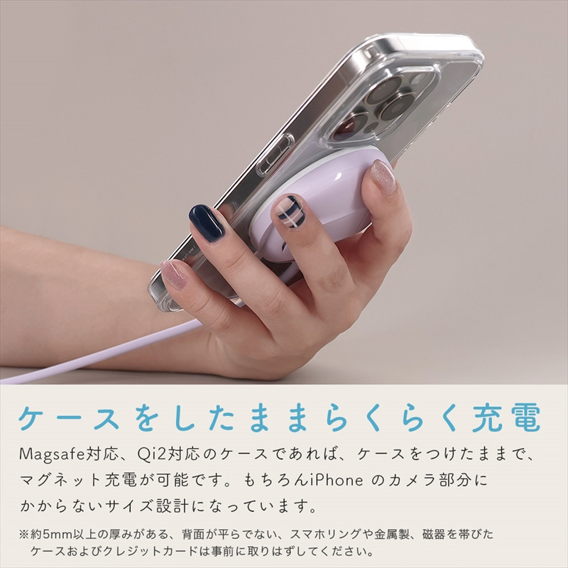 Magsafe対応、Qi2対応のケースであれば、ケースをつけたままで、マグネット充電が可能です。