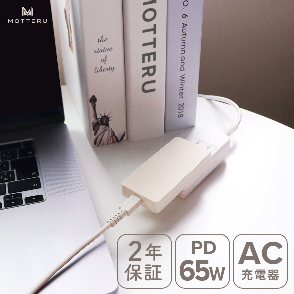 MOTTERU(モッテル) AC充電器 PD65W USB-C 1ポート iPhone Android iPad ノートPC 薄型 折りたたみプラグ GaN採用 急速充電 PSE適合製品 全2色 2年保証 (MOT-ACPD65) アーモンドミルク【 神奈川県 海老名市 】