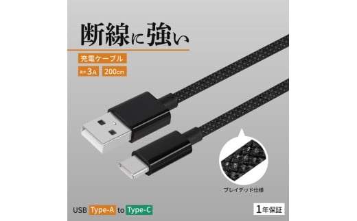 200cmのUSB タイプA to microUSBケーブルです。 防弾チョッキに使われるアラミド繊維を使用し、極めて断線に強く、250000回の屈曲試験をクリアしました。 耐久性に優れたマイクロUSBケーブルです。 2.4Aでの充電に対応しています。 安心の3年保証です。