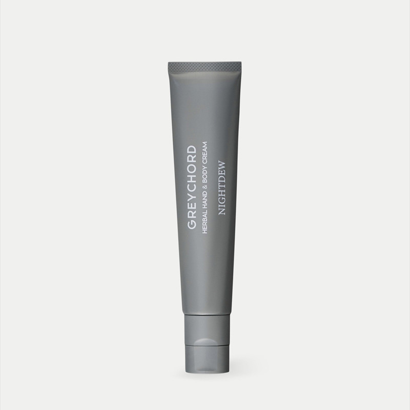 オーガニック植物エキスと100%天然のエッセンシャルオイルを配合した、99%以上が植物由来のハンド&ボディクリーム。 エモリエント性に優れたヤシ油由来のトリ(カプリル酸/カプリン酸)グリセリルをベースとしています。潤い成分をしっかり肌に馴染ませながら、ベタつきのない処方にこだわりました。刺激が少ない成分で作られているので、あらゆる肌タイプの方にお使いいただけます。オリジナルで作成したチューブ容器はスリムで小さいバッグでも邪魔にならないスティック形状。マット加工で仕上げたグレーは男性でも女性でもお使いいただけるデザインに仕上がっており、ちょっとしたギフトにもおすすめです。 【香り「NIGHT DEW」について】 天然精油5種のみで特別にブレンドされた、心身ともにゆったりとリラックスした状態へと導くウッディでハーバルな香り。鎮静効果が高く、アロマテラピーを代表する機能性を誇るラベンダーやベルガモットをメインに、深い森林香を思わせるサイプレス、透明感あふれるフランキンセンス、そしてGREYCHORDらしい、グレイッシュなニュアンスの表現として、コリアンダーの香りをトッピングしました。 【使用方法】 適量を手にとり、お肌になじませてください。 【注意事項】 【ご使用上及び保管上の注意】 お肌に異常が生じていないかよく注意して使用してください。お肌に合わないとき即ち次のような場合には使用を中止してください。 (1)使用中、赤味、はれ、かゆみ、刺激、色抜け(白斑等)や黒ずみ等の異常があらわれた場合 (2)使用したお肌に、直射日光があたって上記のような異常があらわれた場合 傷やはれもの、しっしん等、異常のある部位にはお使いにならないでください。乳幼児の手の届かないところに保管してください。極端に高温又は低温の場所、直射日光のあたる場所には保管しないでください。