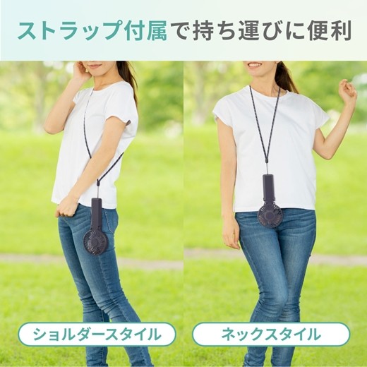 本製品はモバイルバッテリー機能を搭載したポータブルファンです。6枚の羽根でしっかりした風を送ることができ、最長約20時間と長い時間連続でお使いいただけます。