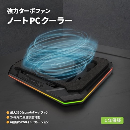 Owltech 最大3500rpm ターボファン搭載 RGBイルミネーション対応 タッチパネル搭載 ゲーミング ノートPCクーラー EXTREME COOL OWL-TGNC-RGB【 ガジェット 海老名市 】