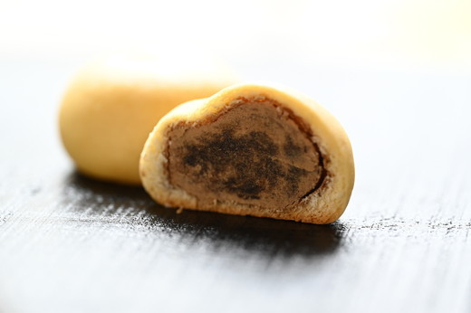 「むかしむかし」・・・座間に古くから伝わる昔話にちなんで名づけられた商品です。白あんにコーヒーを練りこんだコーヒーあんの焼菓子です。