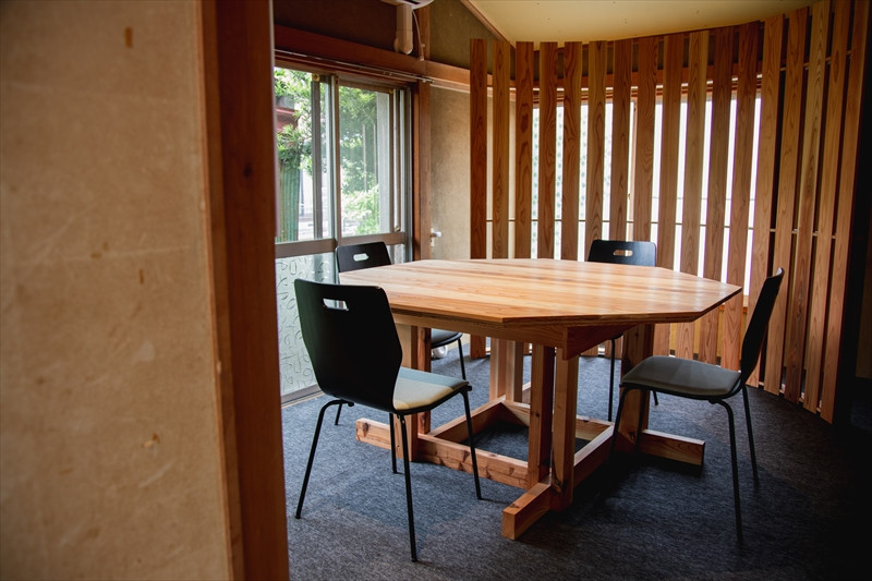 当社が運営する古民家をリノベーションしたコワーキング・イベントスペースである地域交流拠点mado.の貸切利用。落ち着いた雰囲気で、チームメンバーとの仕事や親睦を深めたり、親しい方々とのイベント時に利用してください。
