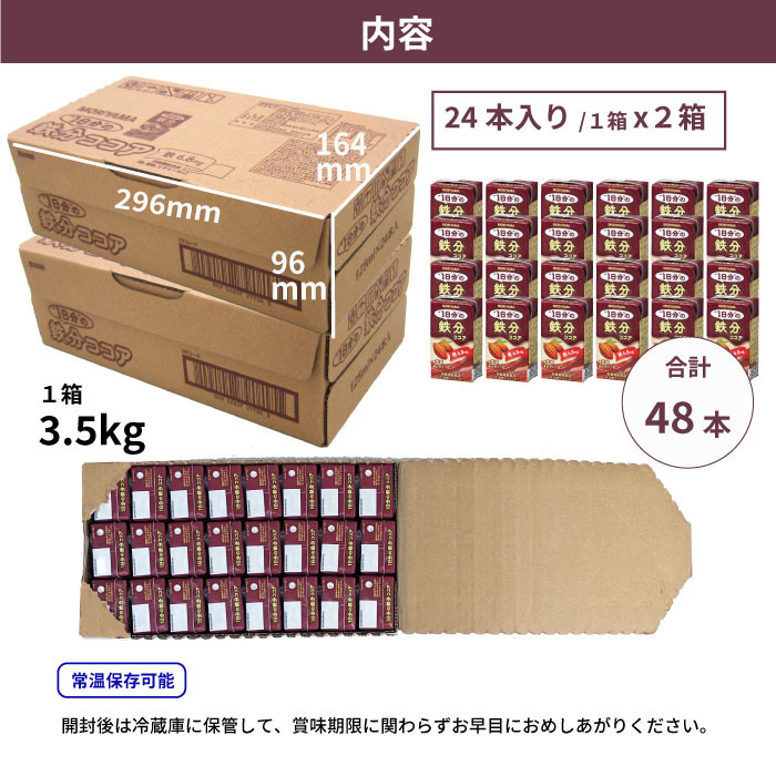 守山乳業「1日分の鉄分ココア」125ml×24本×2ケースのセットです。