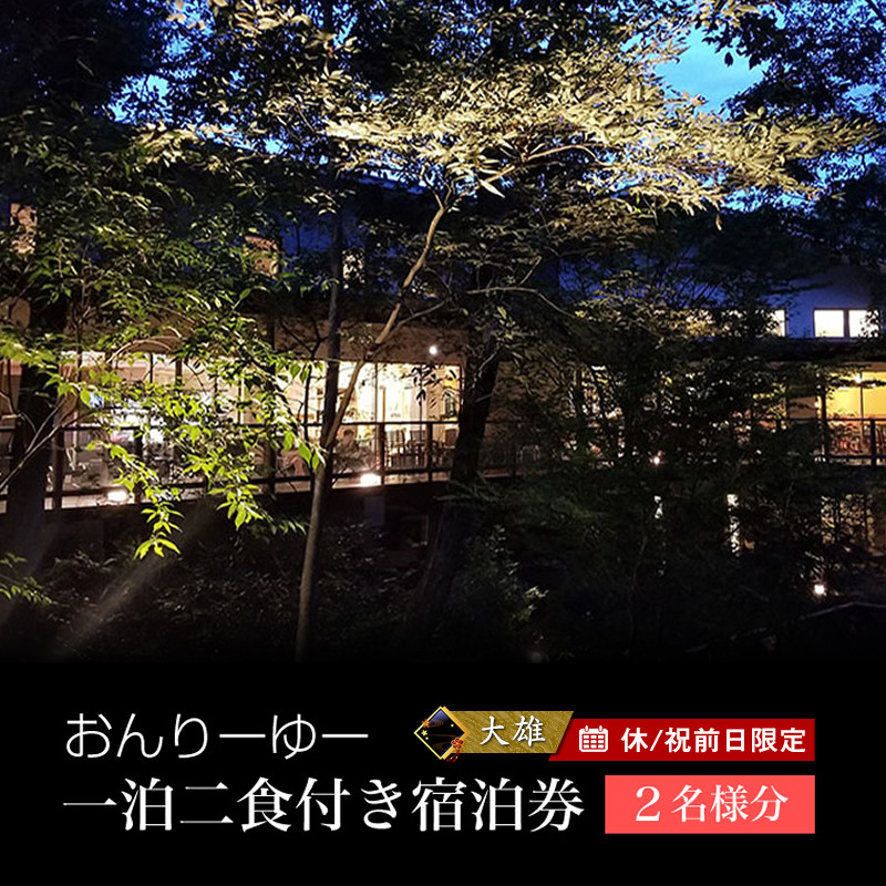 休/祝前日限定 おんりーゆー 1泊2食付きペアご宿泊券【大雄】【温泉 サウナ 宿泊 おんりーゆー 1泊2食付きペアご宿泊券 大雄 広葉樹林に囲まれ森林浴を楽しみながらゆっくりと長湯を楽しめる 神奈川県 南足柄市 】