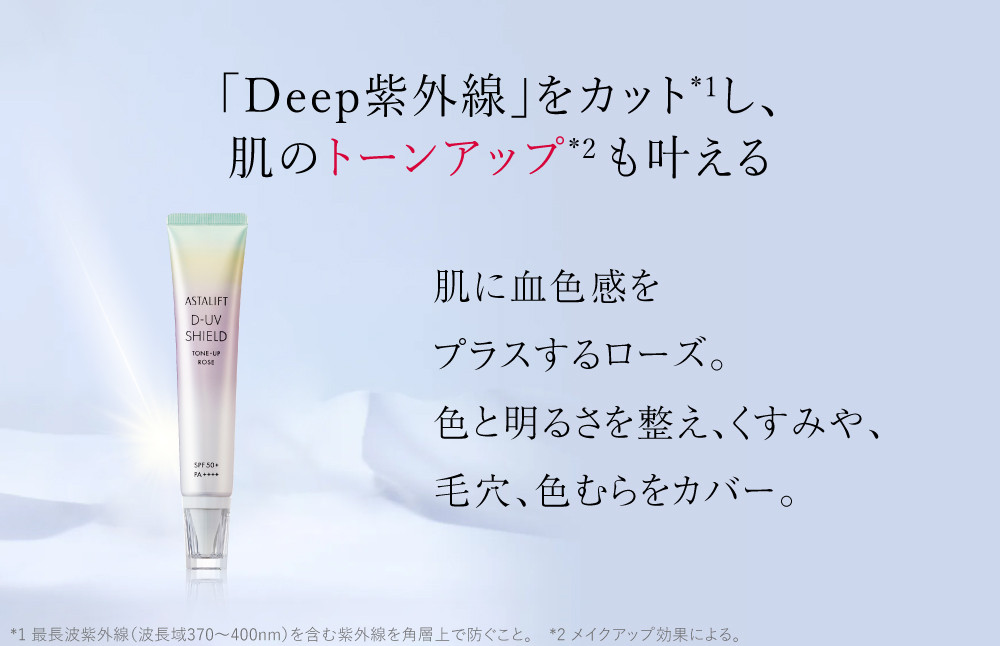 独自技術「D-UV ライトアップシールド」採用により「Deep紫外線」をカット(*1)し、肌のトーンアップ(*2)も叶える